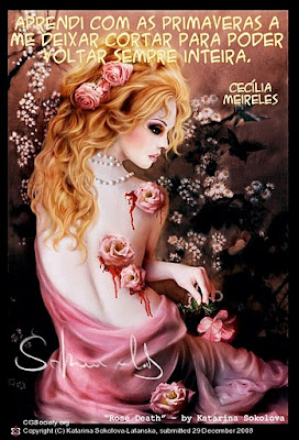 Linda loura, forte e corajosa, com as costas sangrando em rosas, pronta para viver novamente a vida à flor da pele!